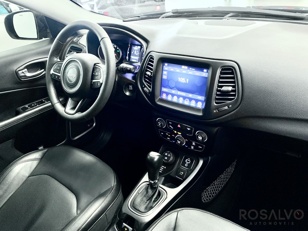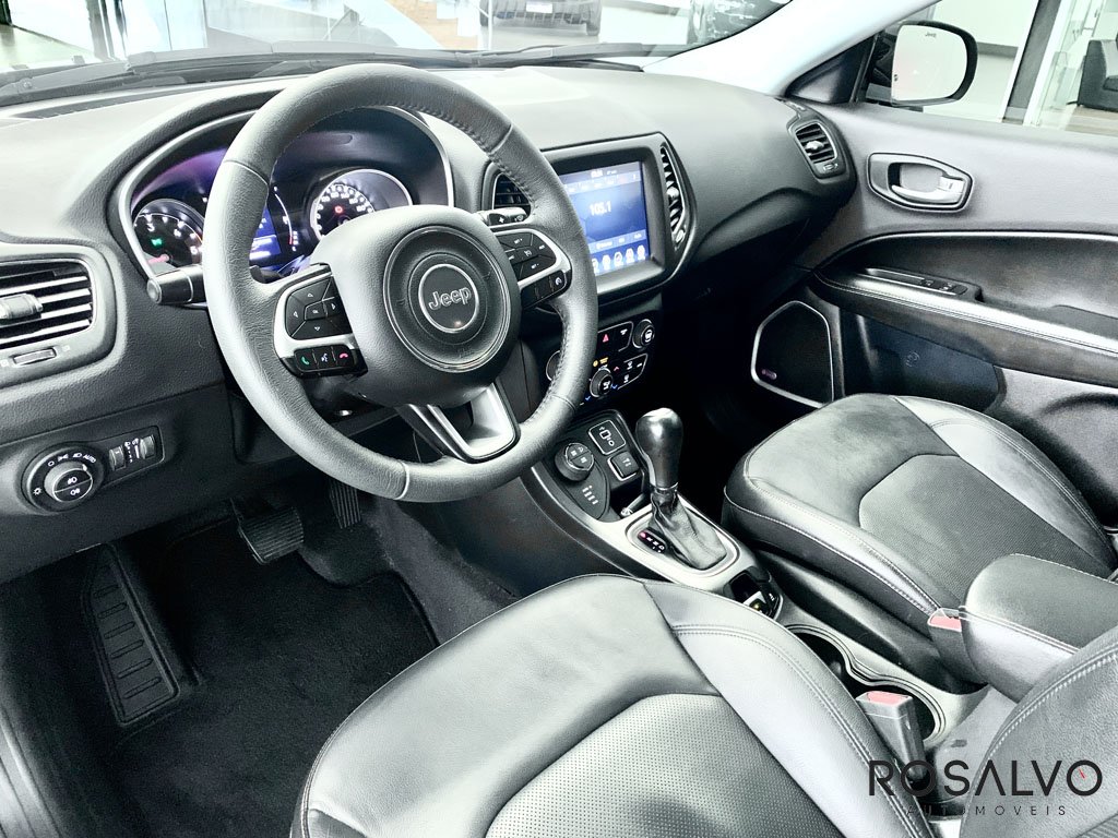 Jeep Compass 2018 2.0 16V Diesel Longitude 4X4 Automático com pacote Premium (sensores de chuva e farol, retrovisor eletrocrômico e som Beats com 506 watts), modo de seleção do terreno, controle de tração, bancos em couro com regulagem de altura, Isofix, paddle shifters, piloto automático, keyless, ar condicionado digital dual zone, multimídia com espelhamento de tela, comandos de voz no volante, câmera e sensor de ré, LED e faróis de Bi-Xenon, rack de teto e rodas de liga leve aro 18. Impecável, qualidade aliada à procedência.