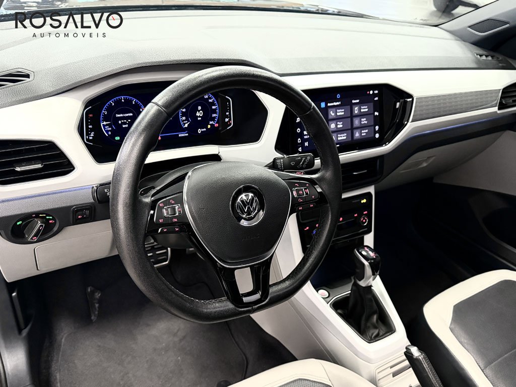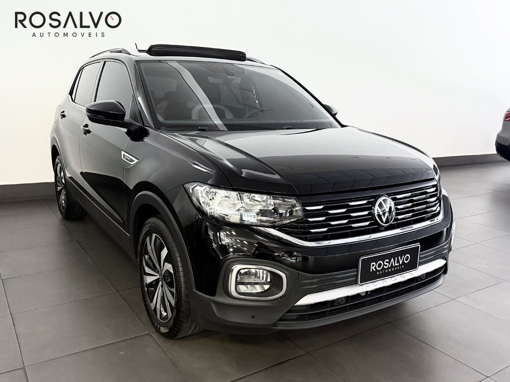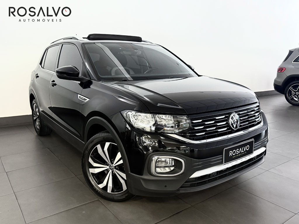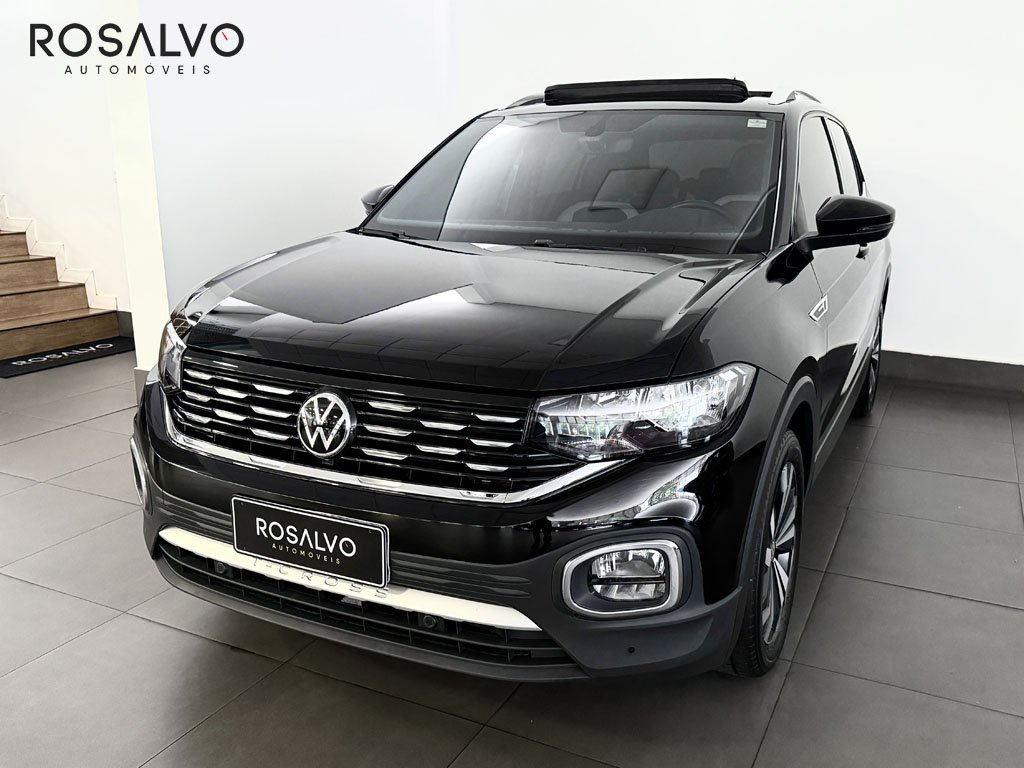 Volkswagen T-Cross 2021 1.4 250 TSI Flex Highline Automático Top, teto solar, novíssimo, qualidade aliada à procedência. Com airbags frontais e laterais, controle de tração, bancos e volante em couro, paddle shifters, keyless, painel digital TFT, central multimídia com espelhamento de tela, som Beats, saída traseira de ar condicionado e USB, faróis full LED, sensor crepuscular, câmera de ré, sensor de estacionamento dianteiro e traseiro, retrovisores elétricos com tilt down e rebatimento, Isofix, rack de teto e rodas de liga.